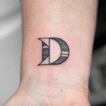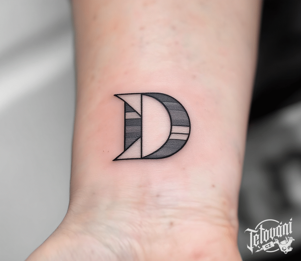 Tetování písmeno D na předloktí