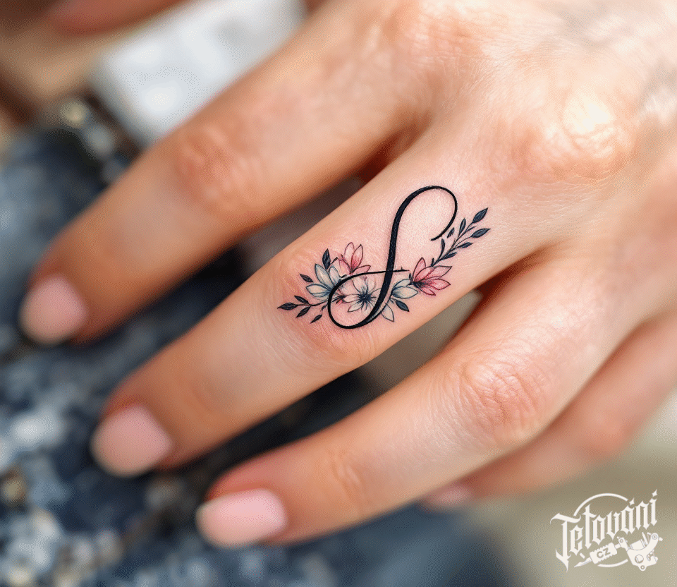 Tetování písmeno S s květy na prst