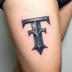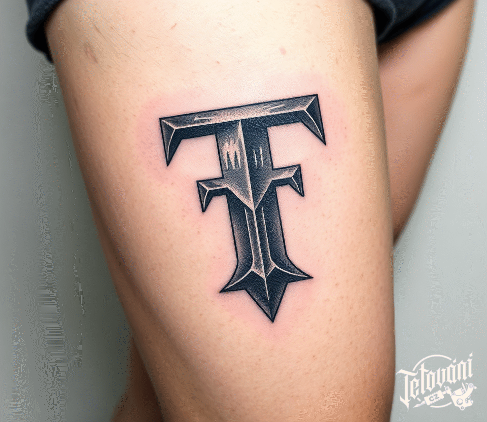 Tetování písmeno T na stehno