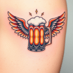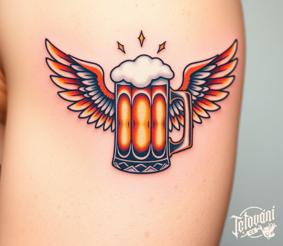 Tetování pivo s křídlama na paži