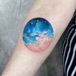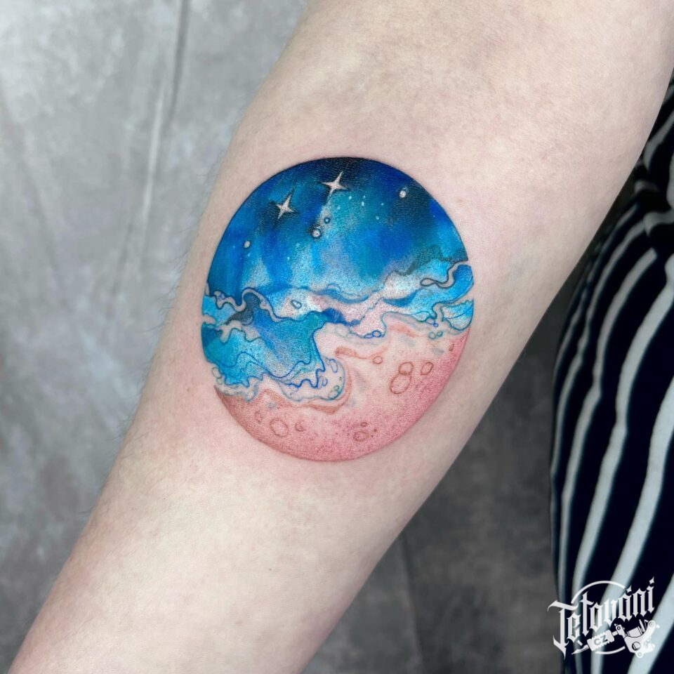 Tetování planeta a moře na předloktí