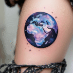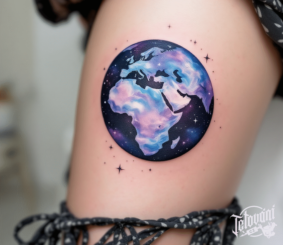 Tetování planeta zeměkoule na bok stehna