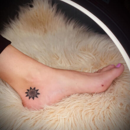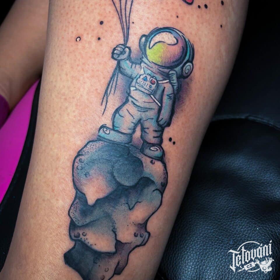 Tetování planety a kosmonaut, symbol, vesmír na lýtko