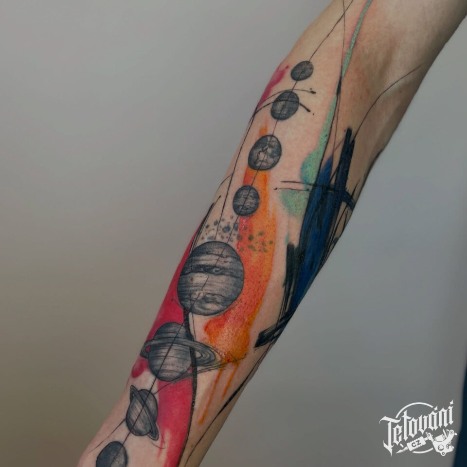 Tetování planety, čáry na předloktí