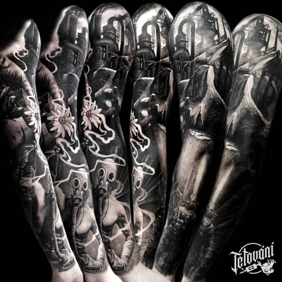 Tetování plynové masky na rukávu