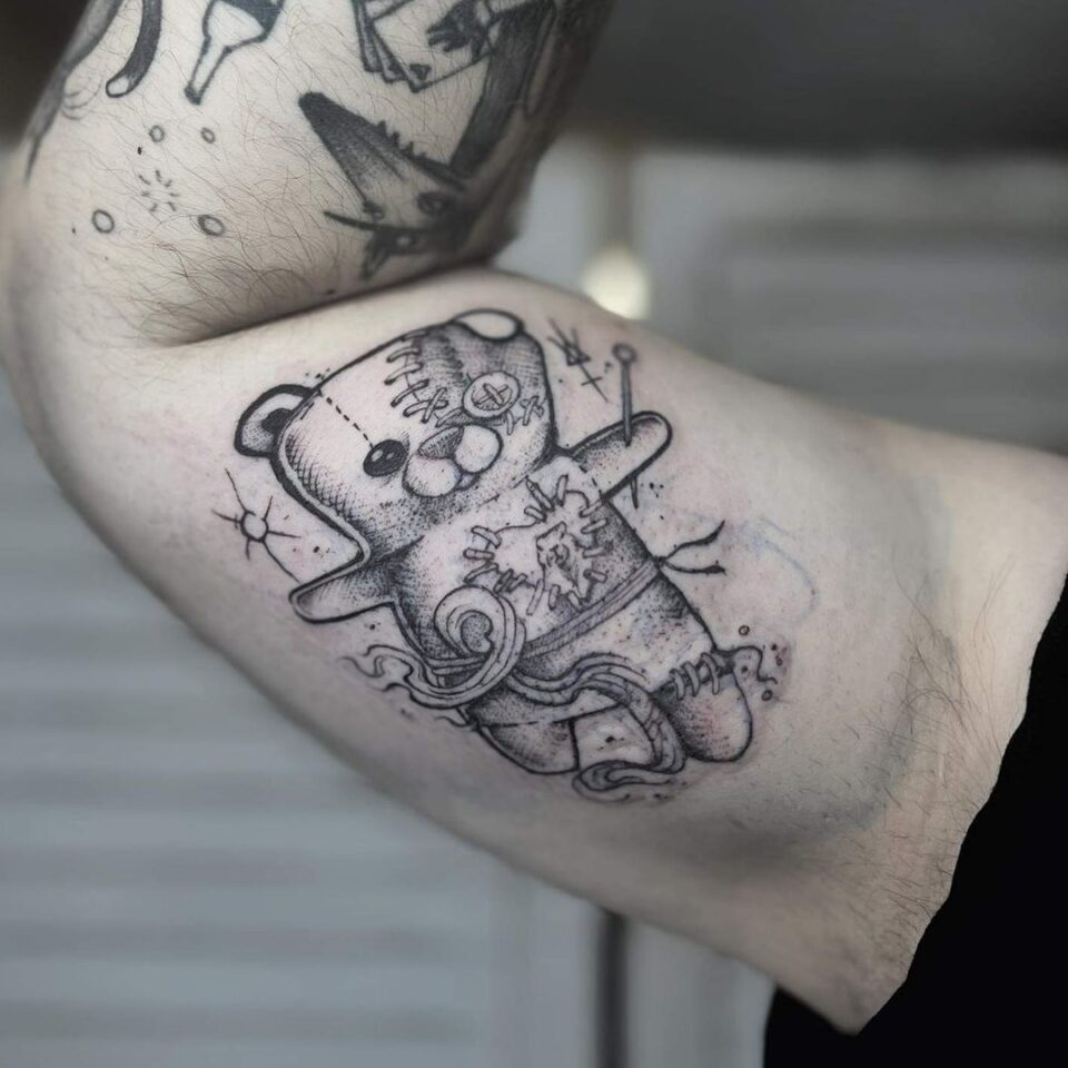Tetování plyšový medvídek na biceps