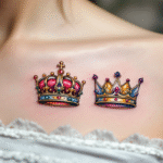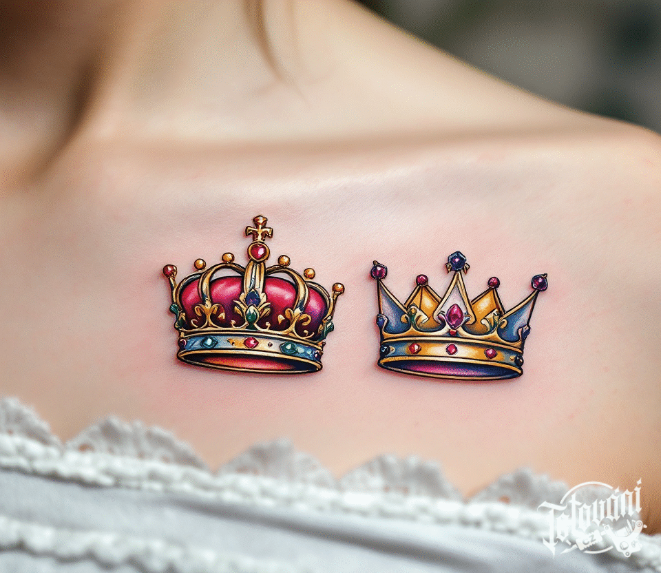 Tetování pod klíční kost, koruny King a Gueen pod klíční kost
