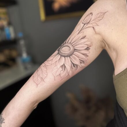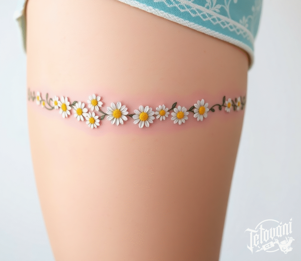 Tetování podvazek květiny, kopretiny na stehně