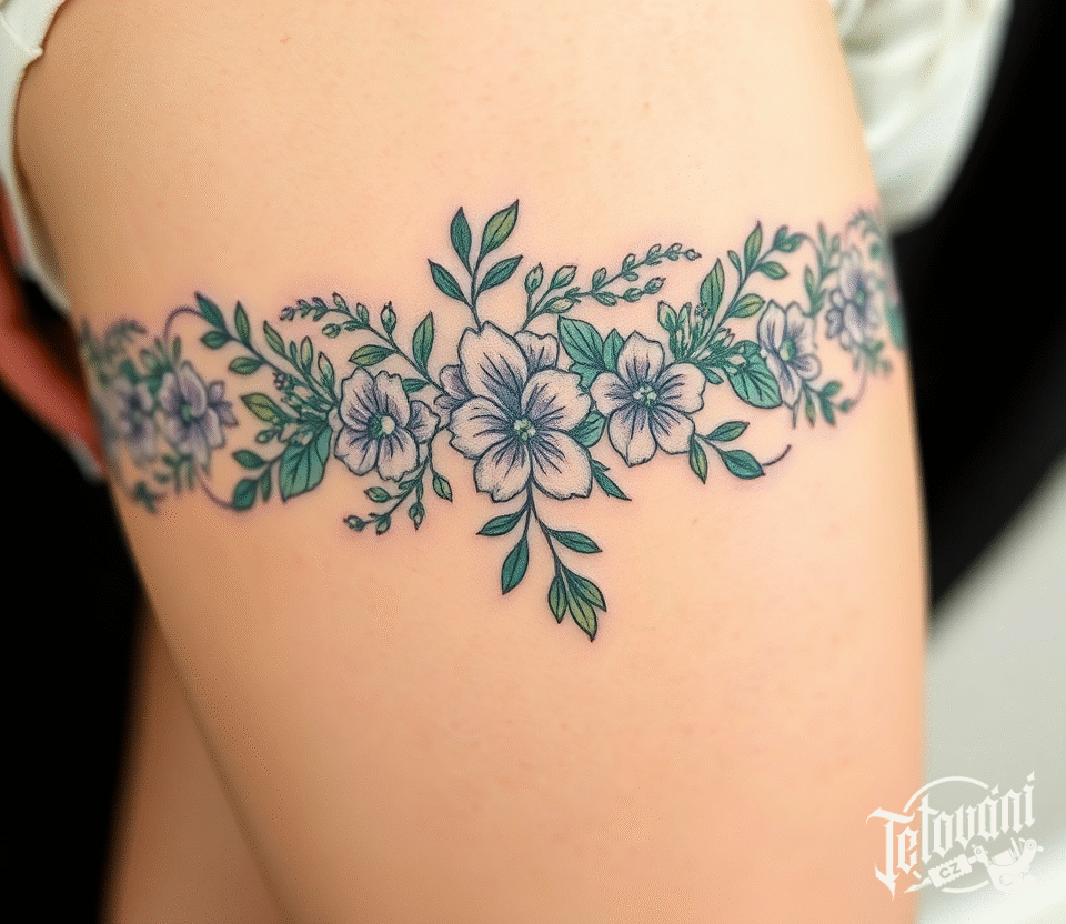 Tetování podvazek květiny na stehně
