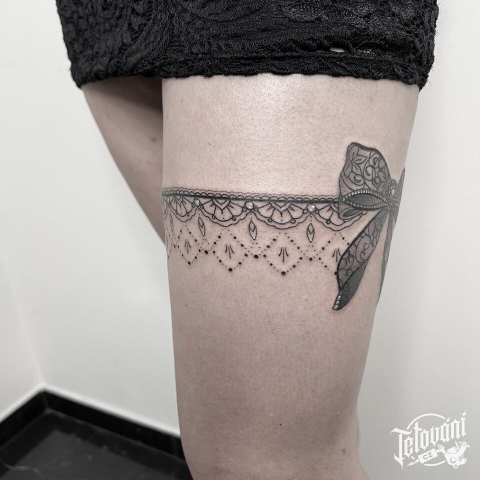 Tetování podvazek s mašlí na stehně