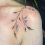 Tetování pomněnky, květiny na rameno a pod klíční kost