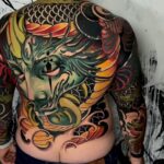 Tetování portrét a mýtické bytosti, drak na zádech