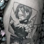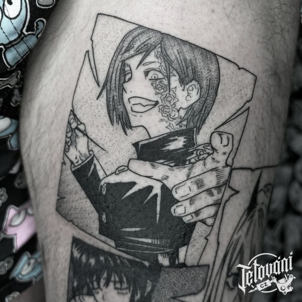 Tetování portrét anime ženy, postavička Nobara Kugisaki na stehno
