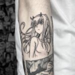 Tetování portrét anime ženy, postavička z filmů a pohádek na předloktí