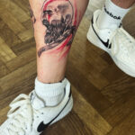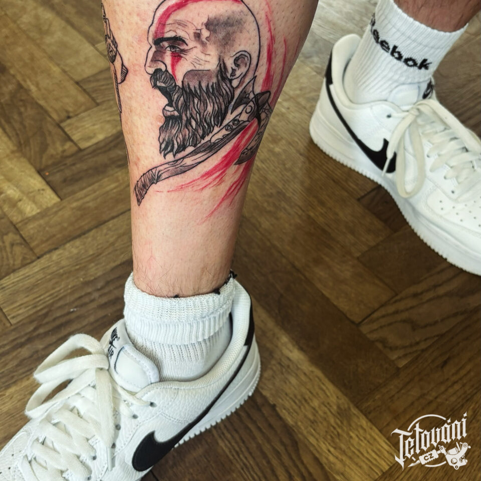 Tetování portrét bojovníka na holeni