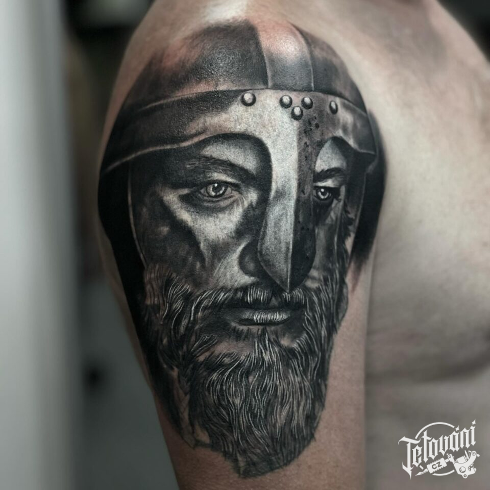 Tetování portrét bojovníka na rameni