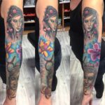 Tetování portrét, Buddha, květiny na ruku