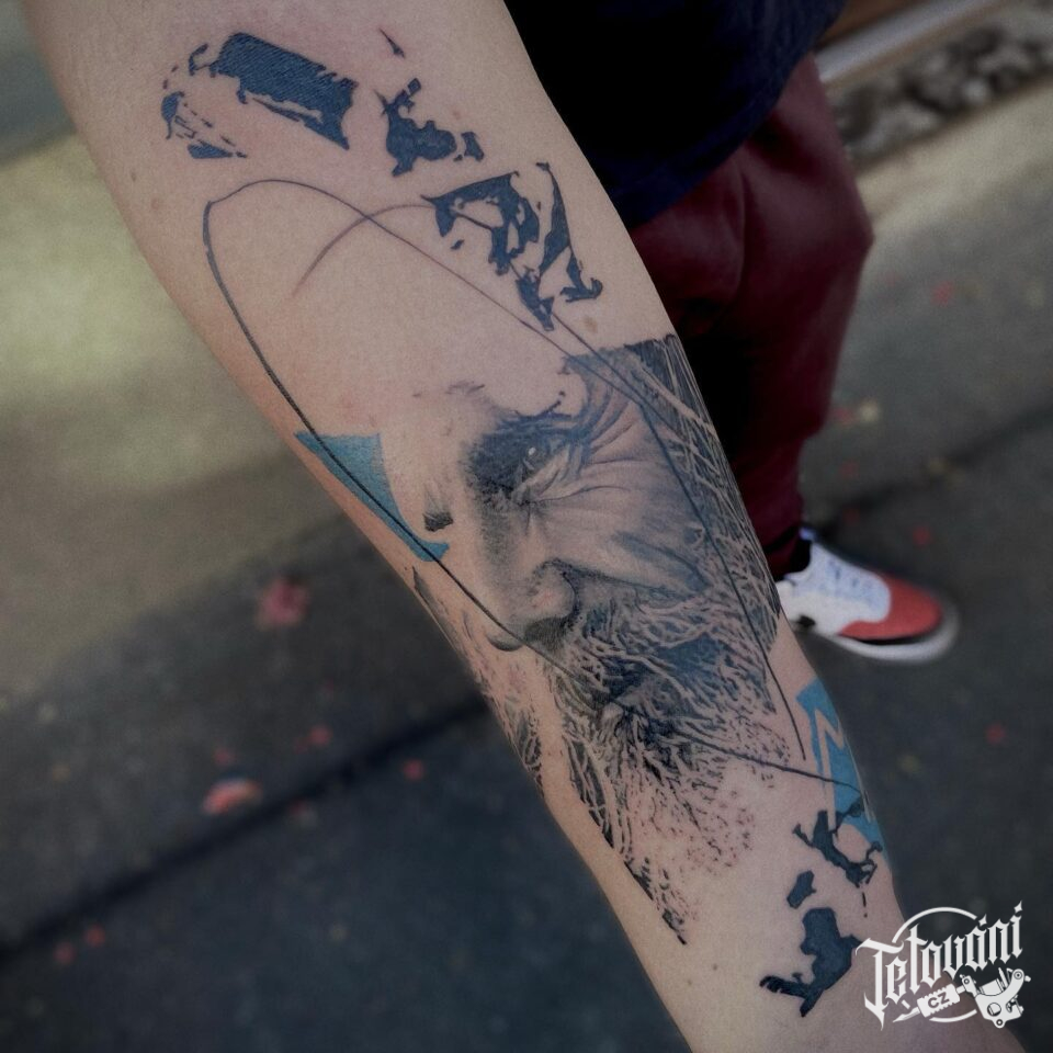 Tetování portrét, čáry na předloktí