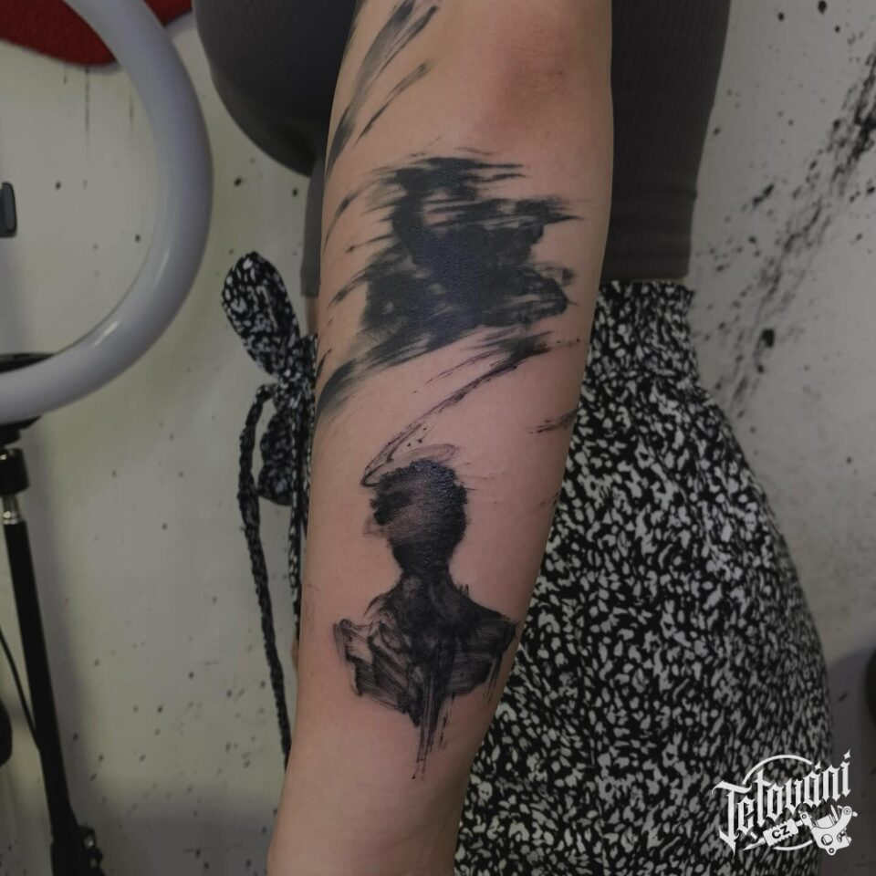 Tetování portrét, čáry, pruhy na ruce