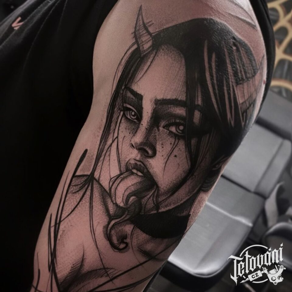 Tetování portrét ďábla na rameno