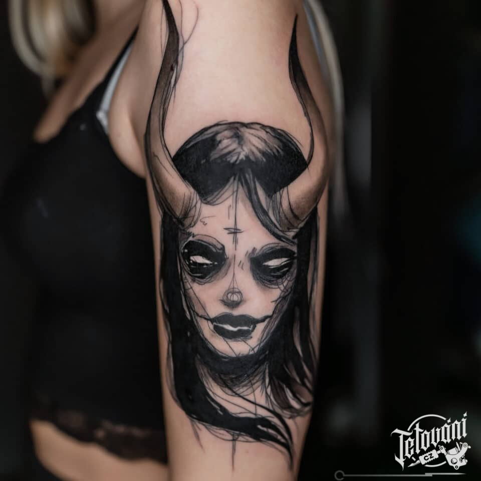 Tetování portrét ďáblice na paži
