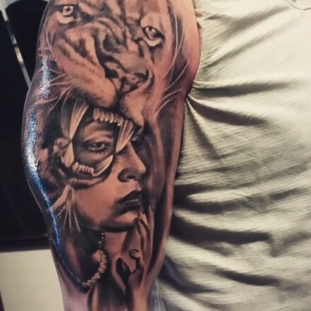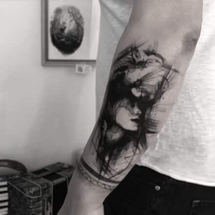 Tetování portrét, dáma s vějířem na předloktí od Gustav Klint