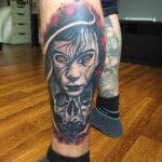 Tetování portrét démon s lebkou na lýtko