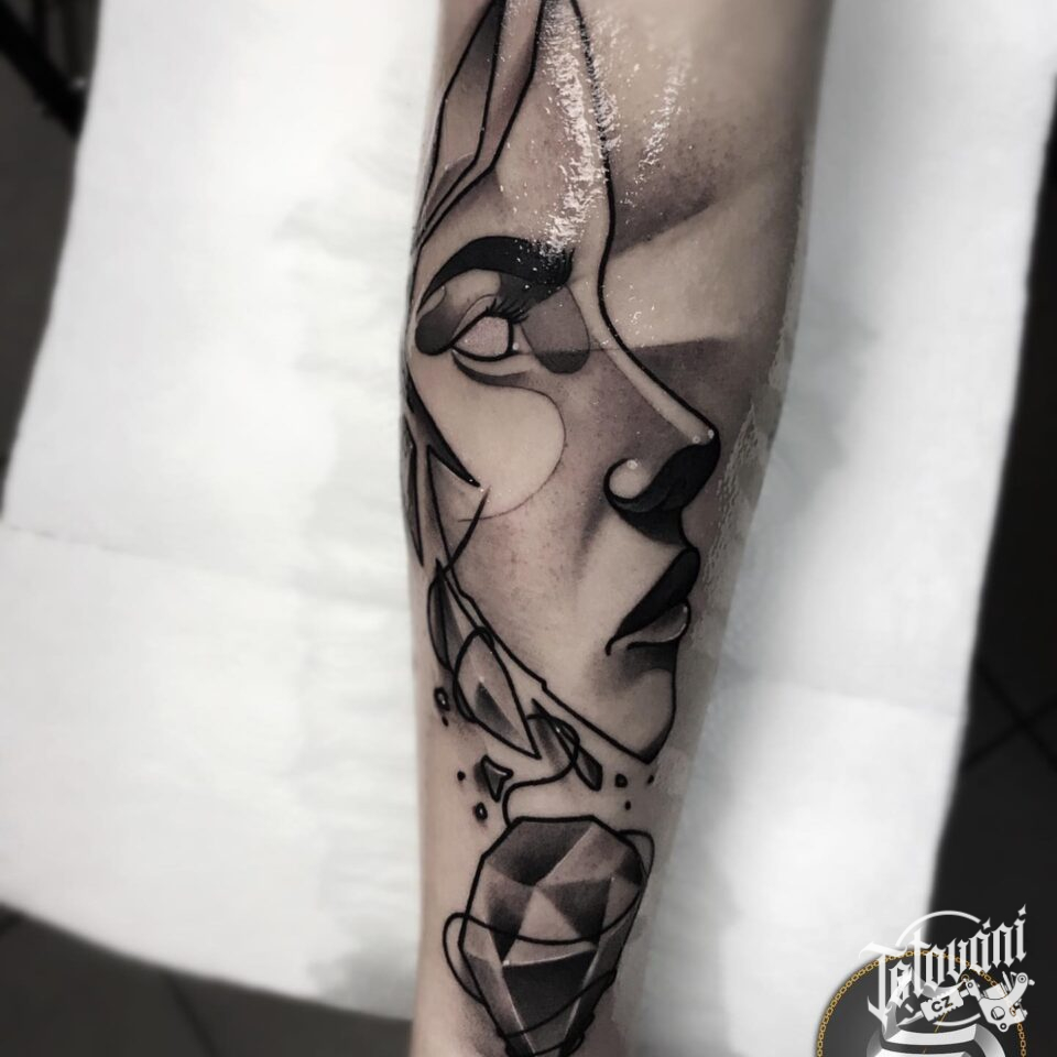 Tetování portrét, diamant na předloktí