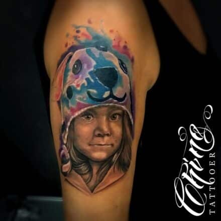 Tetování portrét, dítě na předloktí