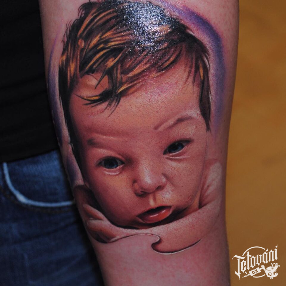 Tetování portrét, dítě na předloktí