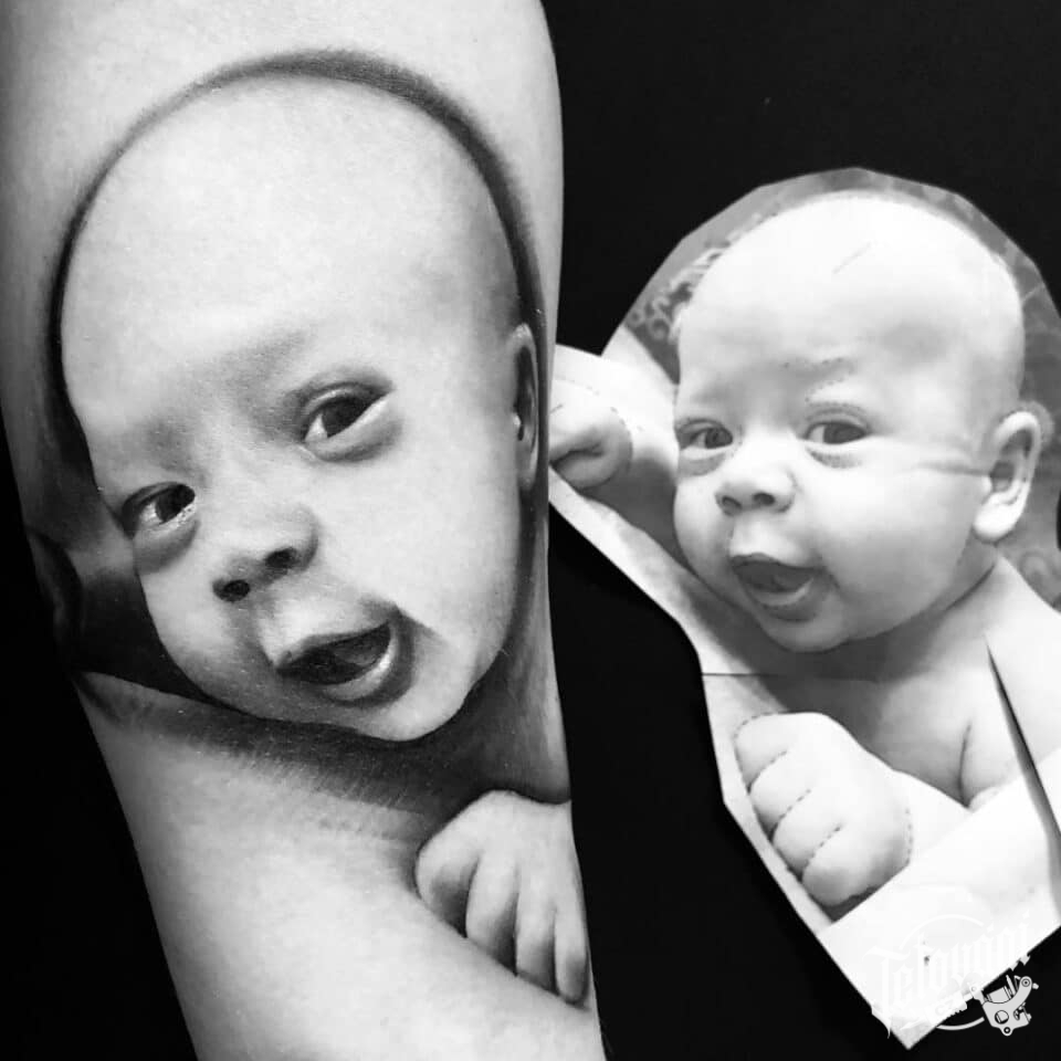 Tetování portrét dítě na předloktí