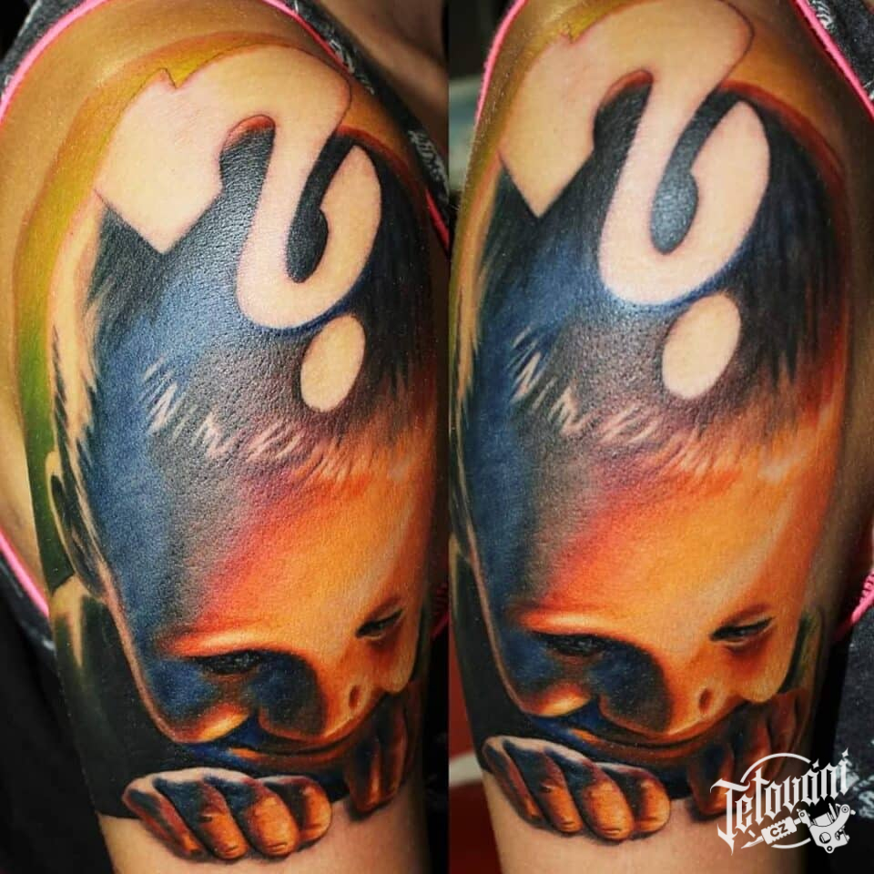Tetování portrét dítě na rameno