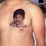 Tetování portrét dítě nápisy na hrudník