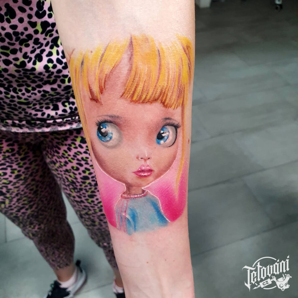 Tetování portrét dítěte jako anime postavička na předloktí