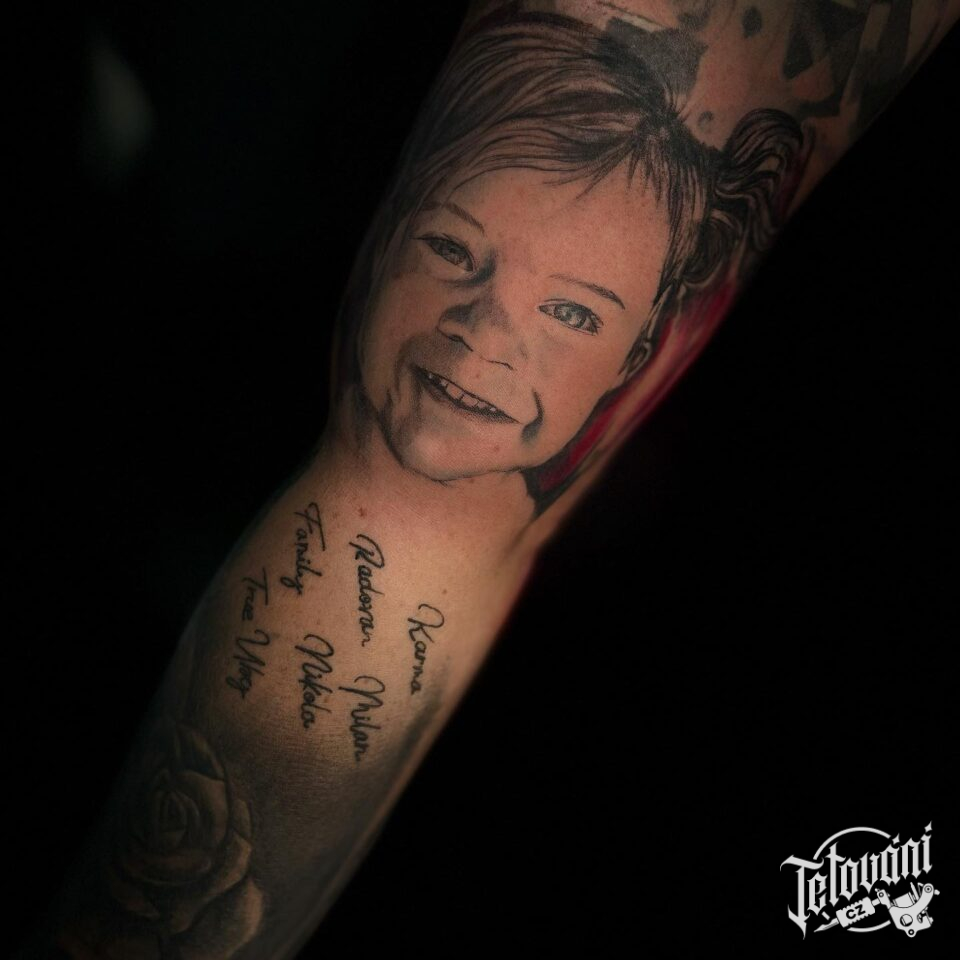 Tetování portrét dítěte na paži