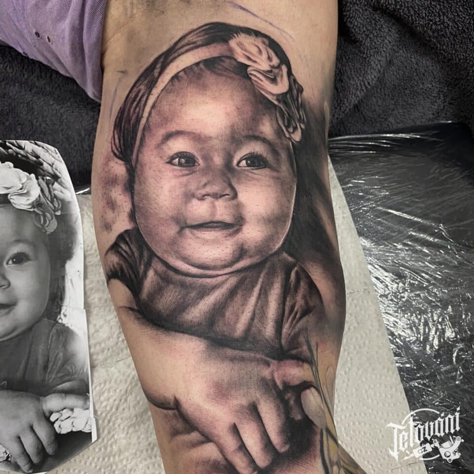 Tetování portrét dítěte na paži