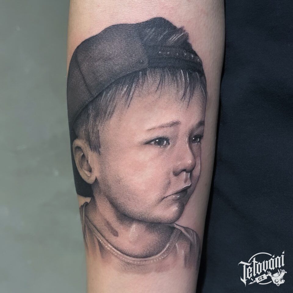 Tetování portrét dítěte na předloktí
