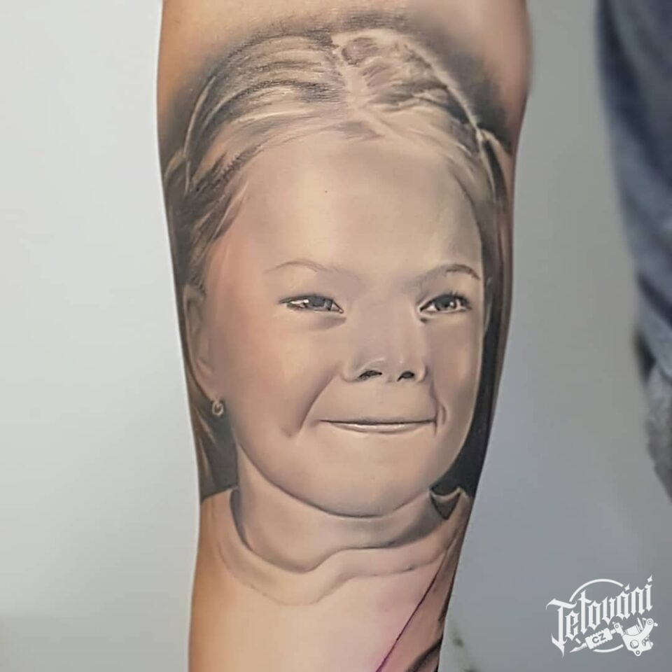 Tetování portrét dítěte na předloktí