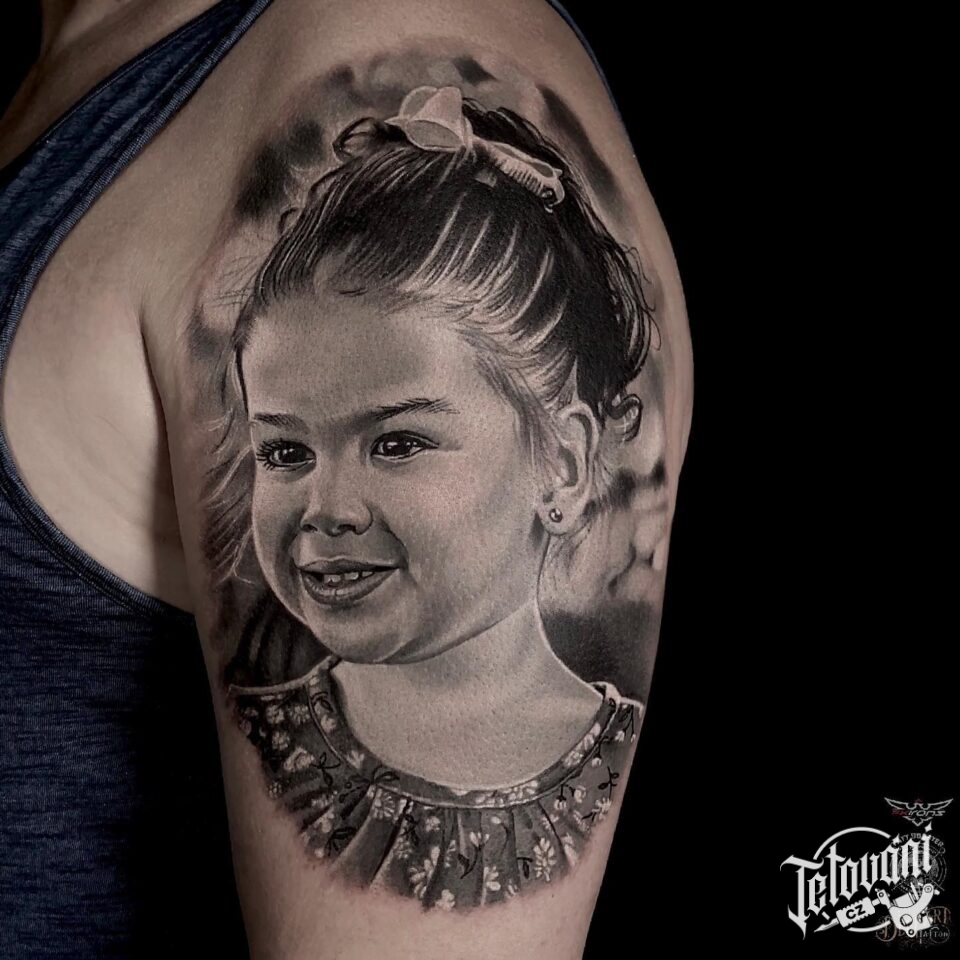 Tetování portrét dítěte na rameni