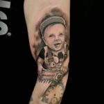 Tetování portrét dítěte na ruce