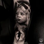 Tetování portrét dítěte na lýtku