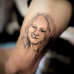Tetování portrét dívky na stehně