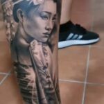 Tetování portrét Gejši na lýtku