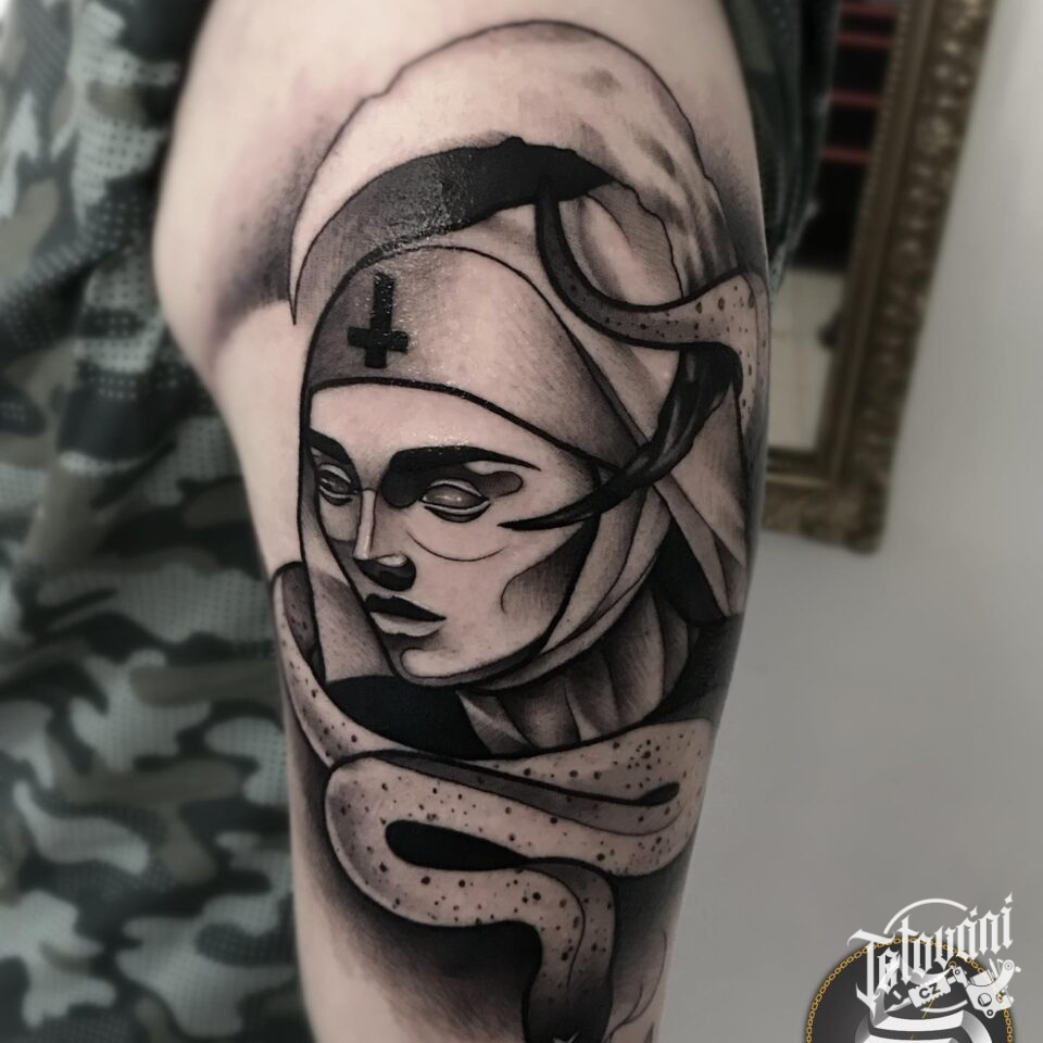 Tetování portrét, had na paži