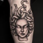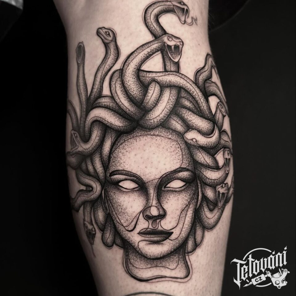 Tetování portrét hadí ženy na lýtko