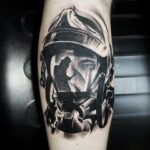 Tetování portrét hasiče na lýtko