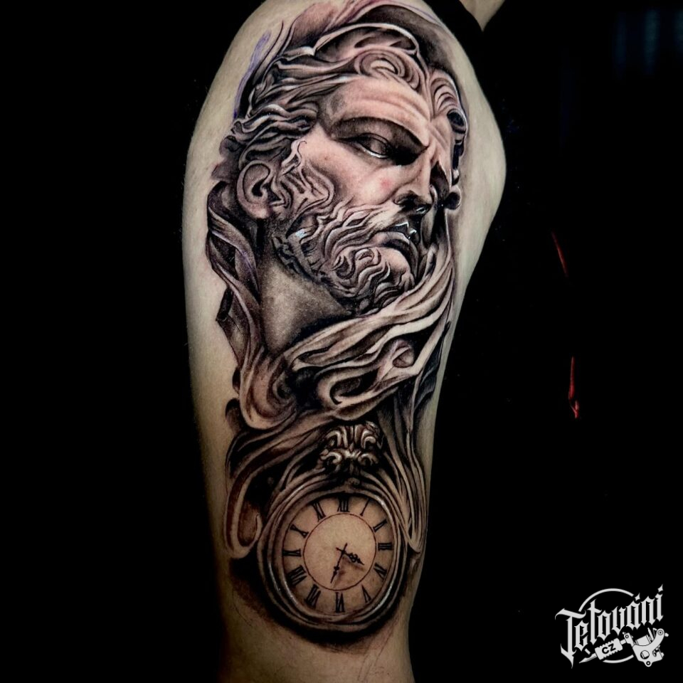 Tetování portrét, hodiny na rameni