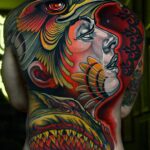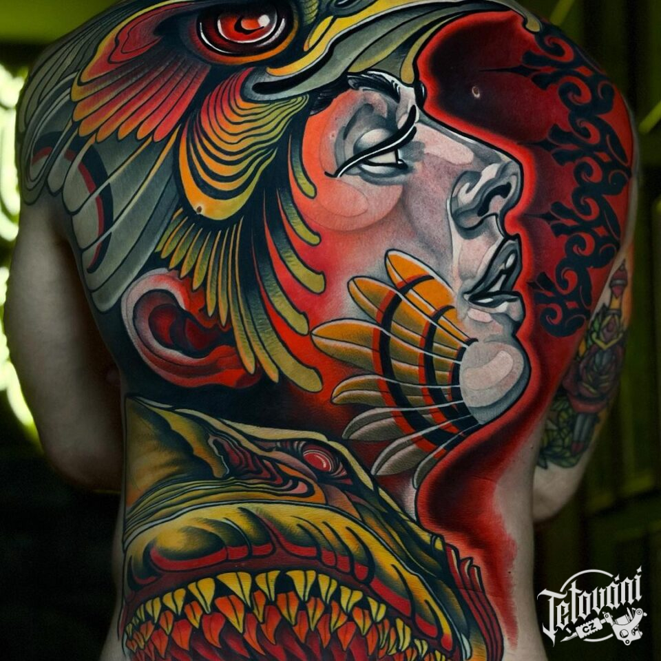 Tetování portrét, indián, zvířata, ptáci, orel na zádech