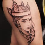 Tetování portrét indiánky na boku stehna