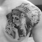 Tetování portrét indiánky na hrudníku